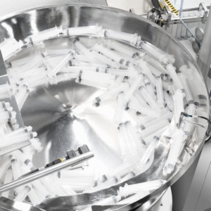 Syringe Loading ⇒ Syringe sorting ⇒ Liquid Filling ⇒ Stoppering ⇒ Plugging ⇒ Labelling ⇒ Inspection ⇒ Packing