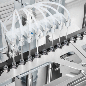 Vial Loading ⇒ Ultrasonic Washing ⇒ Fine Washing (3 times of water washing and 3 times of compressed air washing) ⇒ Depyrogenation Sterilization ⇒ Pre-nitrogen Filling ⇒ Liquid Filling ⇒ Post-nitrogen Filling ⇒ Stoppering (Half Stoppering for Freeze Drying) ⇒ Capping ⇒ Vial Discharge ⇒ Labelling ⇒ Inspection ⇒ Packing