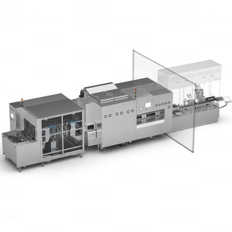 The Vial Liquid Washing Sterilization Aseptic Filling Stoppering Closing Machine, which consists of a Vertical Ultrasonic Vial Washing Machine, a Depyrogenation Tunnel, a Aseptic Filling and Stoppering Machine, and Capping machine, is suitable for the filling of 2ml -20ml vials. They can work as stand-along equipments and complete linkage lines.
